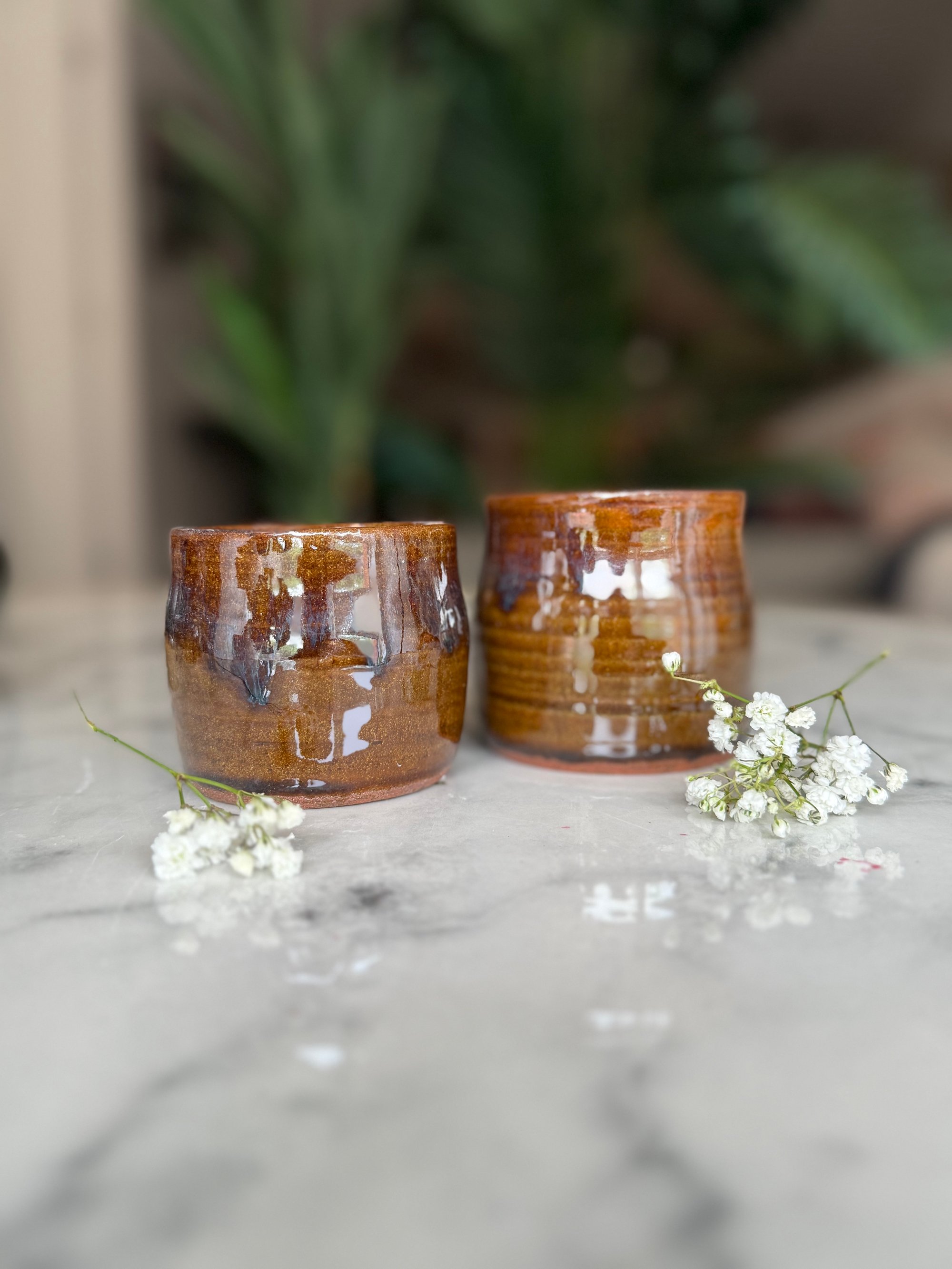 two-tone chai khullads on red clay